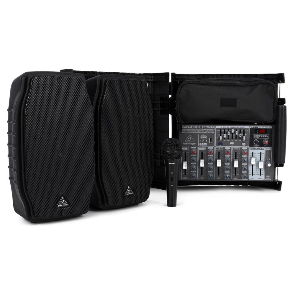 - Ultra-compact 2 x 100-Watt, 5-channel portable PA system in a briefcase format