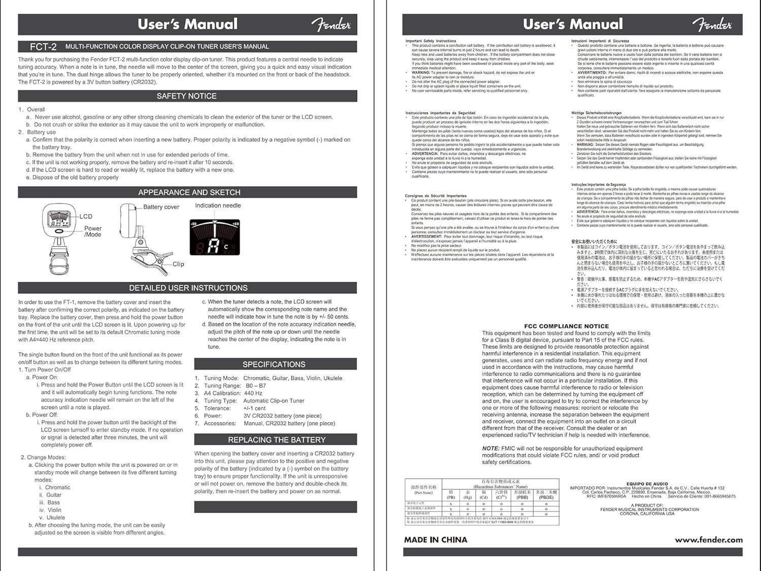 FCT-2 Professional Multi-Instrument Clip-On Tuner for Guitar