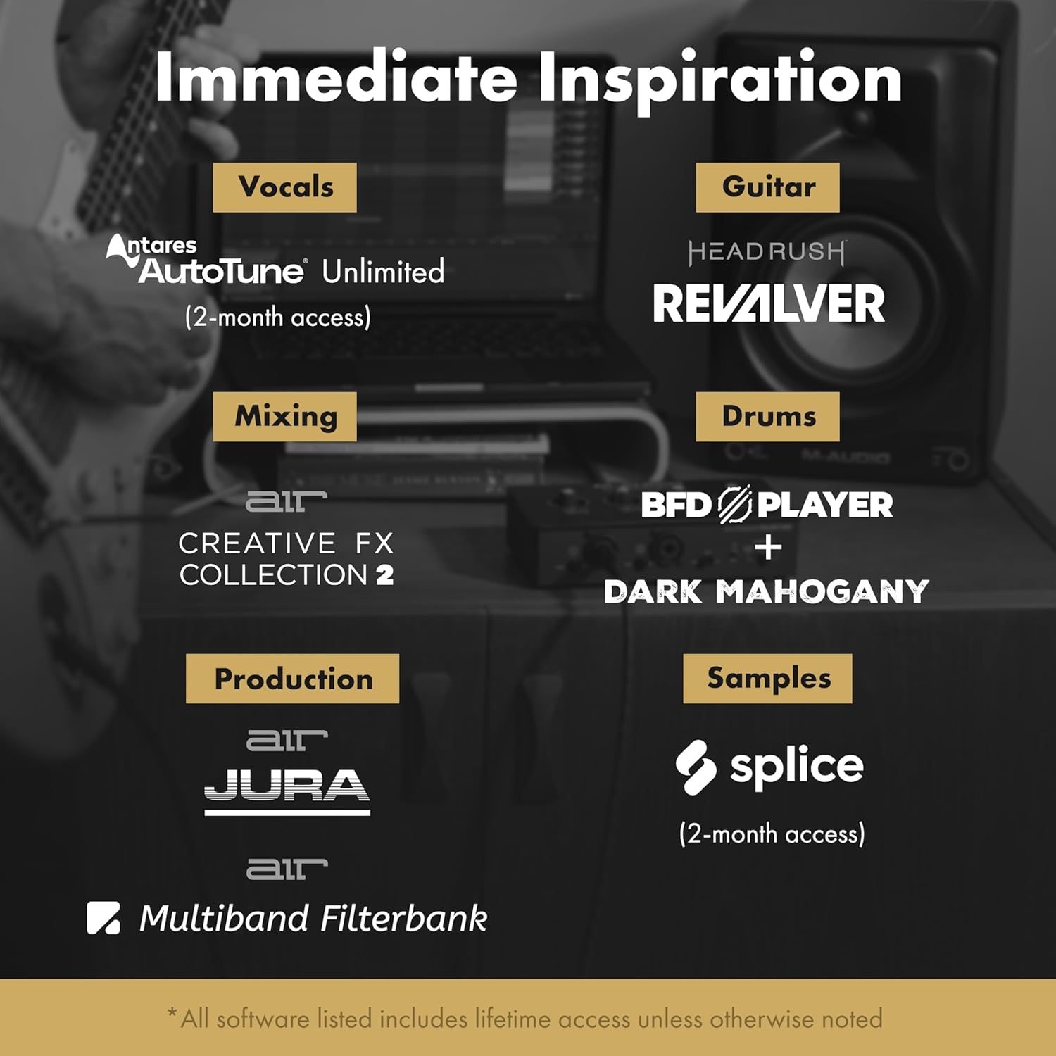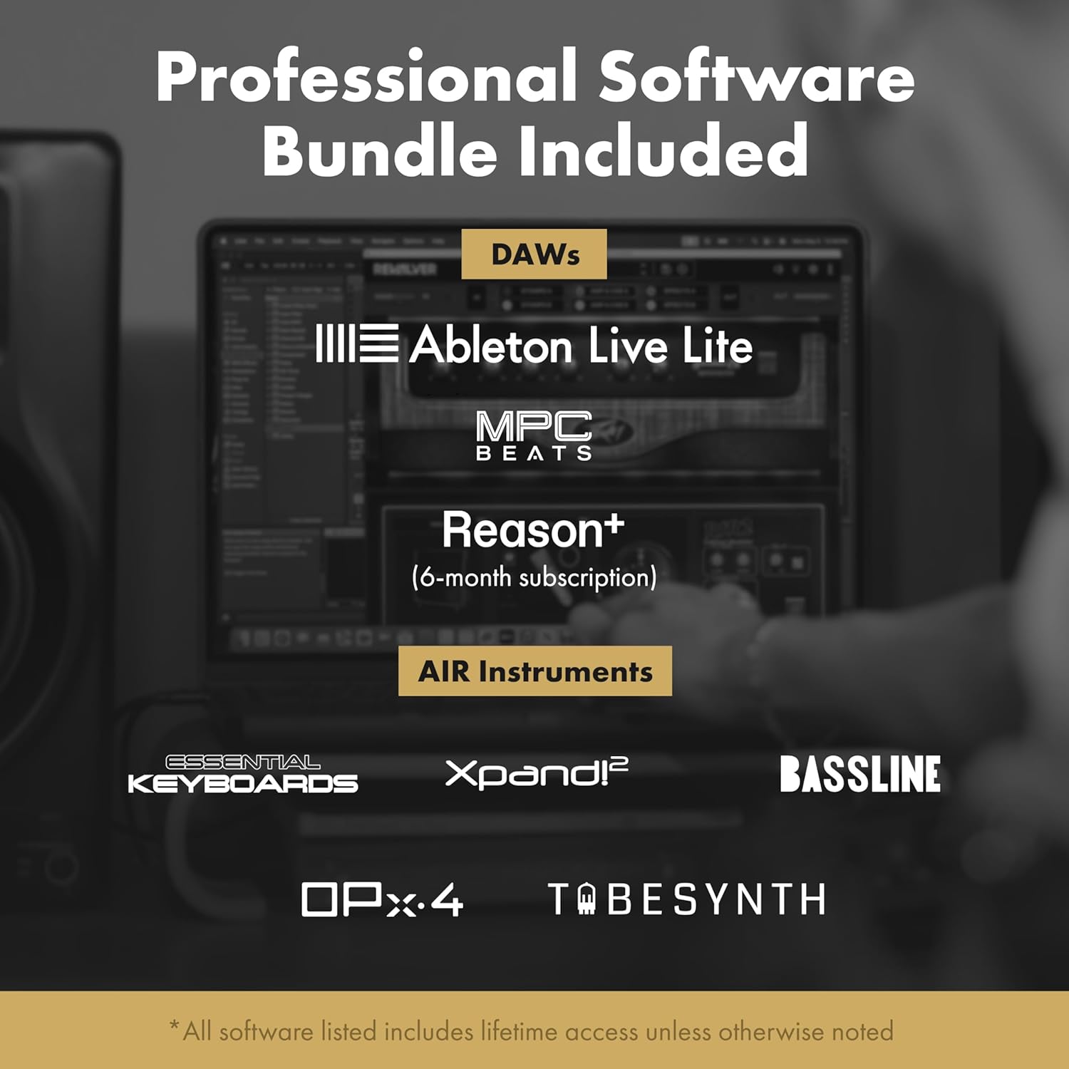 - Comprehensive Software Bundle – Propel your creative journey with top-of-the-line DAWs, sample libraries and effects: Ableton Live Lite, Reason+, Akai Professional MPC Beats, plus 2-months of Splice