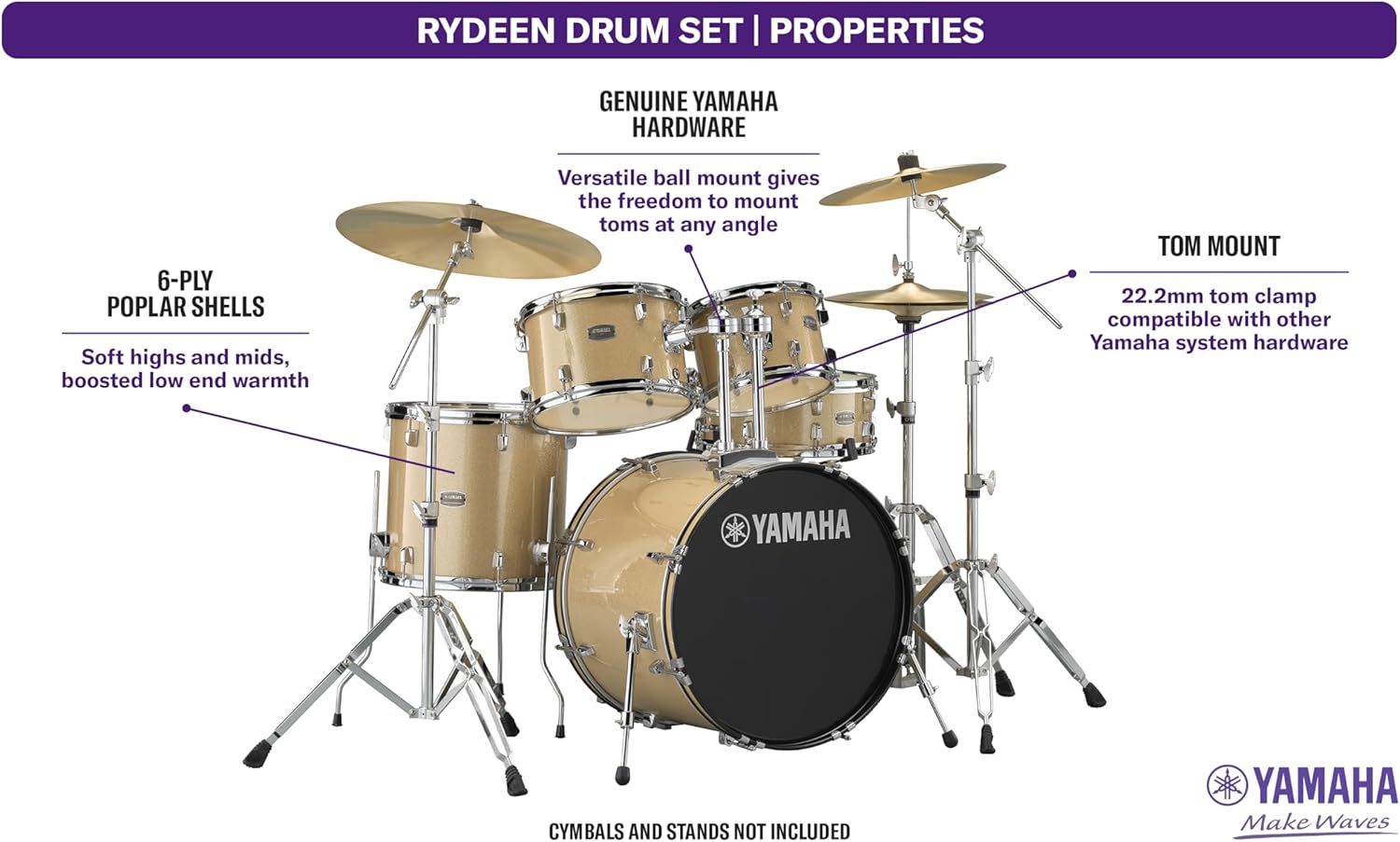 - Genuine Yamaha Tom Ball and Pipe Clamps for maximum adjustability, versatility and non-slip reliability