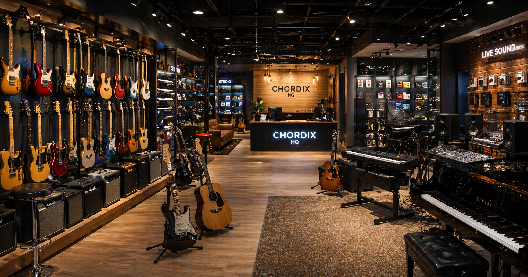 Step into the world of Chordix HQ, where music comes to life. Our showroom is designed to give you a hands-on experience with the latest musical instruments and professional audio equipment in a premium, inspiring environment.